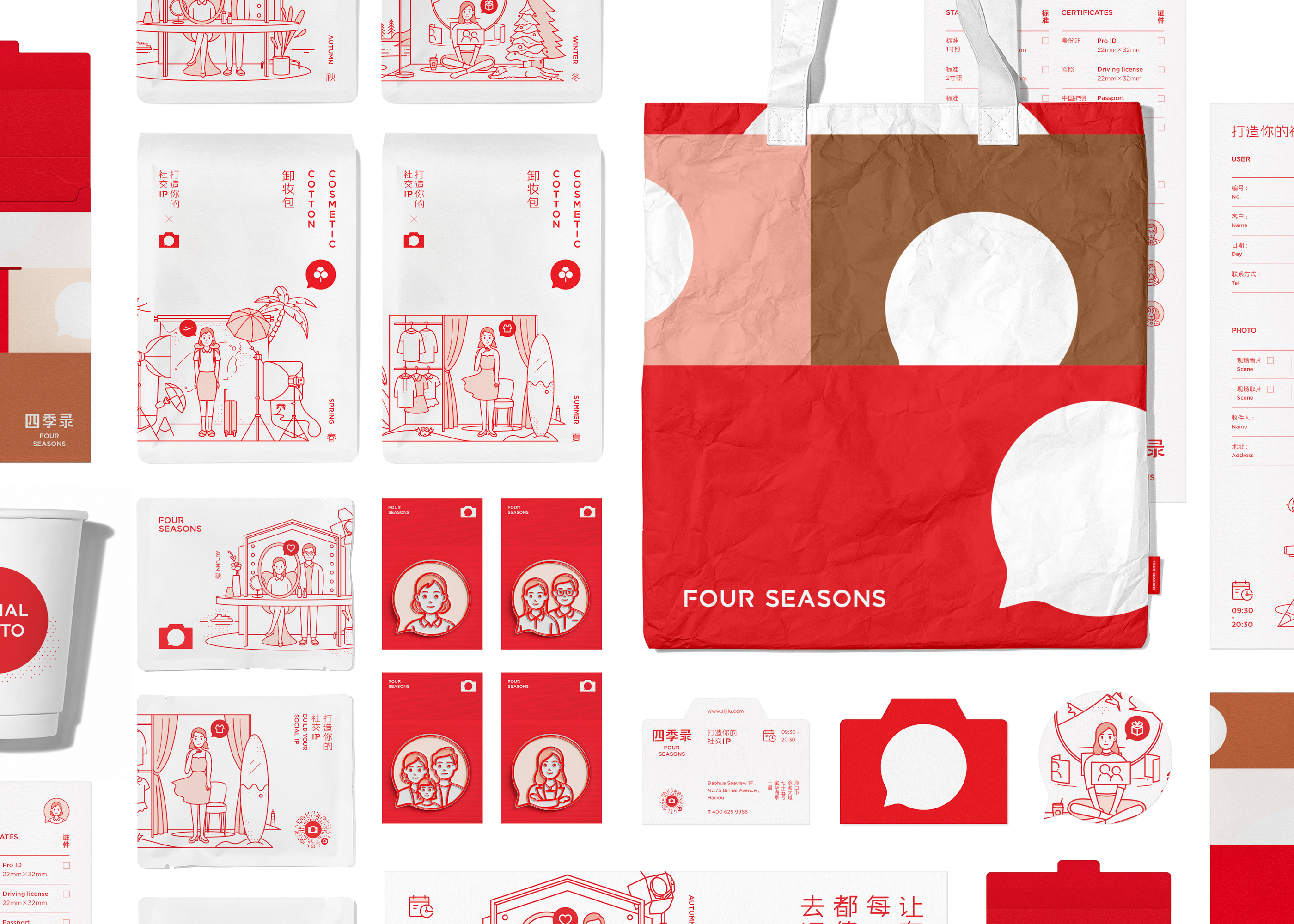 全新的視覺形象由“用鏡頭說(shuō)話(huà)”的雙關概念而來(lái),既是攝影(yǐng)專業感的表達,更是社交真實性的記錄,很好地诠釋了“社交照(zhào)”的品類細分(fēn)。同時将品牌名稱中的“四季”形成趣味的場景,與産品類型和服務流程相(xiàng)關聯,融入形象系統。讓有你(nǐ)的每一個春夏秋冬,都(dōu)值得(de)我們去(qù)記錄。