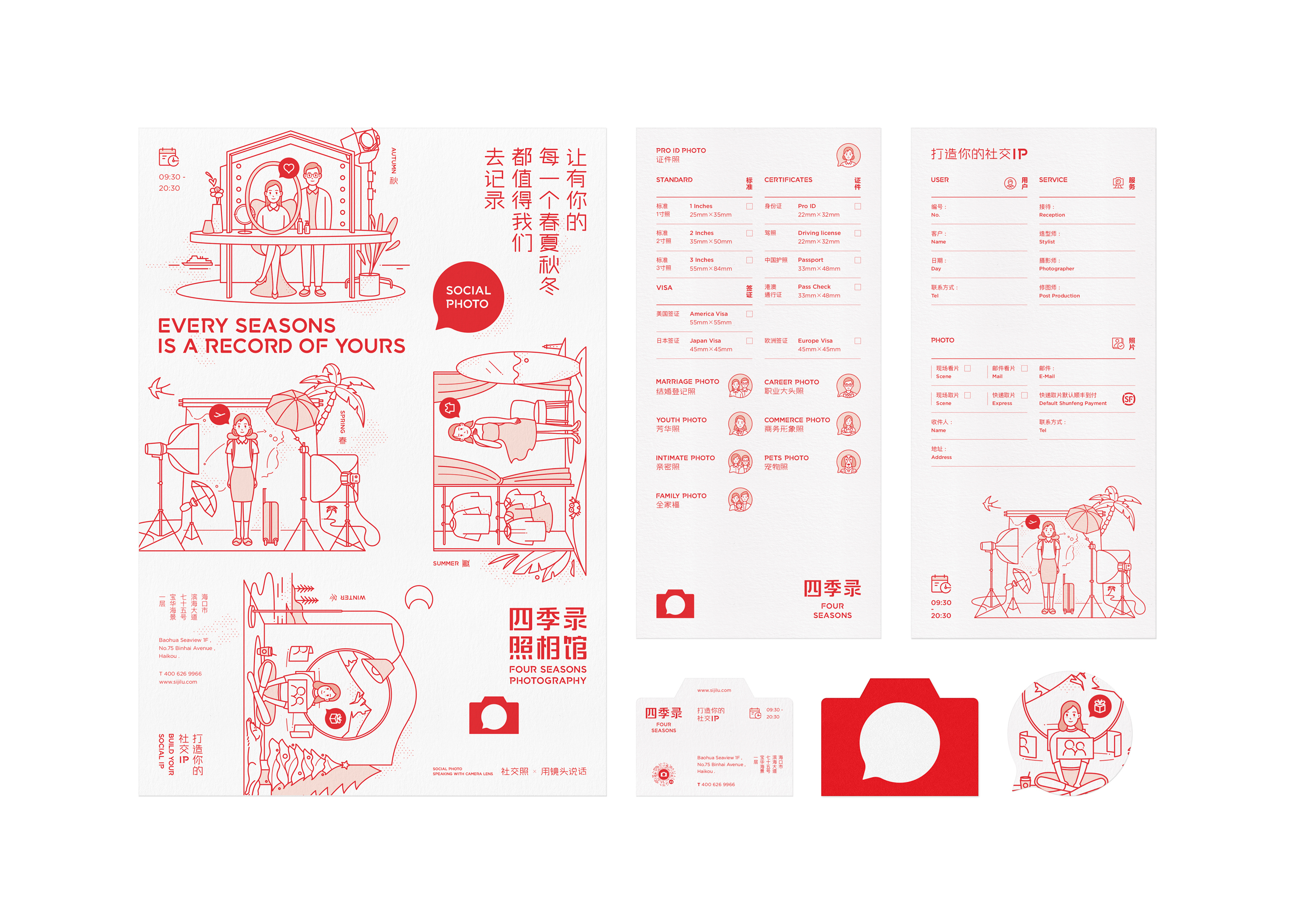 四季錄照(zhào)相(xiàng)館是一家全新創建的攝影(yǐng)品牌,專注于精緻的證件(jiàn)照(zhào)和專屬的個人(rén)形象照(zhào)。希望在這個看(kàn)圖社交的時代,用鏡頭去(qù)探索更多有趣的可(kě)能,用影(yǐng)像爲顧客保留更多美好的記憶。因此,四季錄照(zhào)相(xiàng)館以“社交照(zhào)”作(zuò)爲全新的品類細分(fēn),定位打造專屬社交印象的照(zhào)相(xiàng)館。